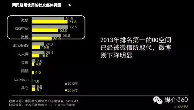 目前,微信已经超越QQ空间成为网民使用最多的社交应用。