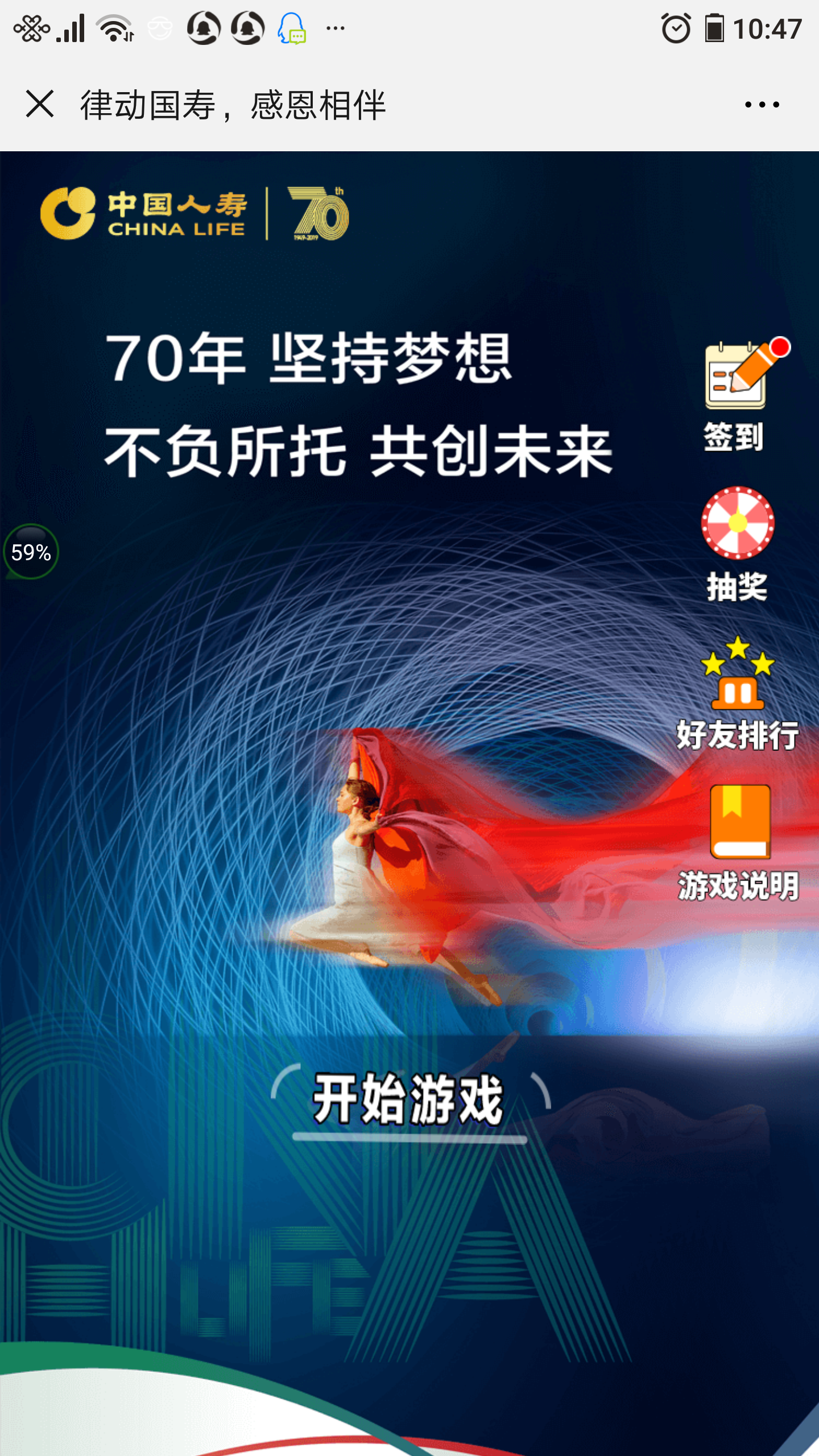 中国人寿与中华人民共和国同龄,在祖国即将迎来七十周年之即,中国人寿河北省分公司推出了自己的定制版小游戏,以这种方式与祖国同庆。