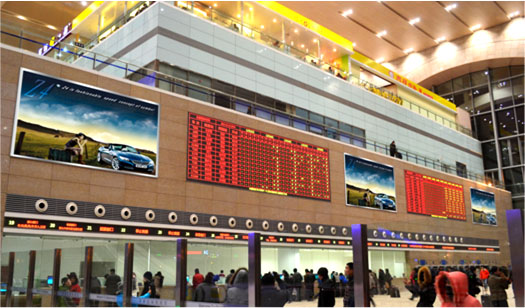 媒体位于一层进站大厅左侧服务厅上方,是进出站人流聚集地,连续4块巨幅媒体形式让受众记忆深刻。在这里投放广告可以彰显品牌实力,其地理位置特殊,视觉冲击力极强,是石家庄站黄金广告位。